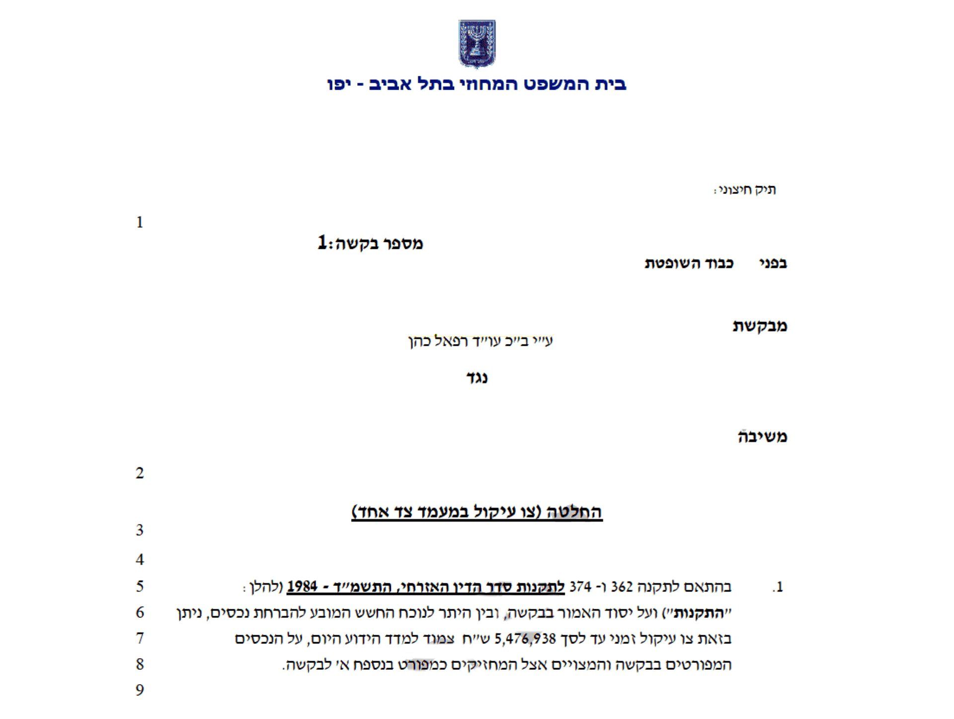 בתביעה שייצג משרדנו בגין תביעה כספית בין קבלן משנה לקבלן ראשי, פסק ביהמ"ש המחוזי על מתן עיקול זמני במעמד צד אחד על כלל נכסי הקבלן הראשי בסך של כ- 5.5 מיליון ₪, וזאת בכדי שמרשתנו תוכל להיפרע מהקבלן הראשי במימוש פסק הדין.